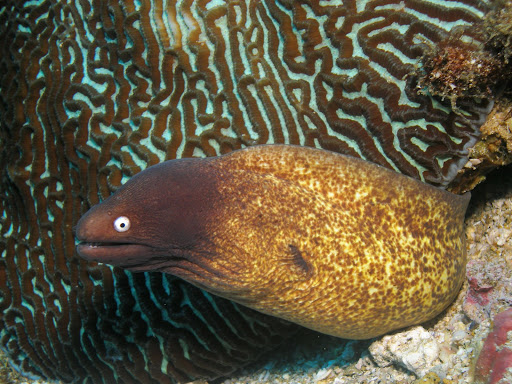 Green Rock (G.R.) zijn een heleboel grote rotsen bij elkaar, met een hoop mooie kleinere visjes, en weer een hoop mooi verschillend koraal en slugs. Slugs (soort van onderwater-naaktslakken) waren echt mooi: in allerlei kleuren (en zelfs) vormen, en ze hadden namen als 'Magnificent Slug' (hehehe :P) en 'Pustulose Wart Slug' (dan prefereer je als slak toch de eerste, denk ik dan :P). Hier (G.R.) heb ik ook mijn eerste Yellow Boxfish gezien, die echt hilarisch zijn. En nog een Moray Eel (tzal toch niet he.. :P) die in zn geheel in een rotshoekje lag! Zag er vet uit. Hij zwom zelfs nog een beetje (soort van). Verder waren er een hoop wrasse en een grotere ramora(?), die aan andere vissen hangen en huidcellen wegeten. ..Geweldig van de natuur, maar het was minder dat ze aan mn been begonnen te knabbelen (erk). Wel mooi. Hier ook de erg mooie blue-ringed angelfish gezien, als ook een zwart zeesterretje (snoezig).